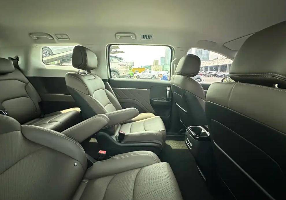 内饰配备悬浮式中控屏,下方保留了物理按键设计,并且还会配备手机无线充电面板,整体看上去有着很高的质感。车内采用2+2+3的7座布局,第二排座椅可支持大角度椅背调节。